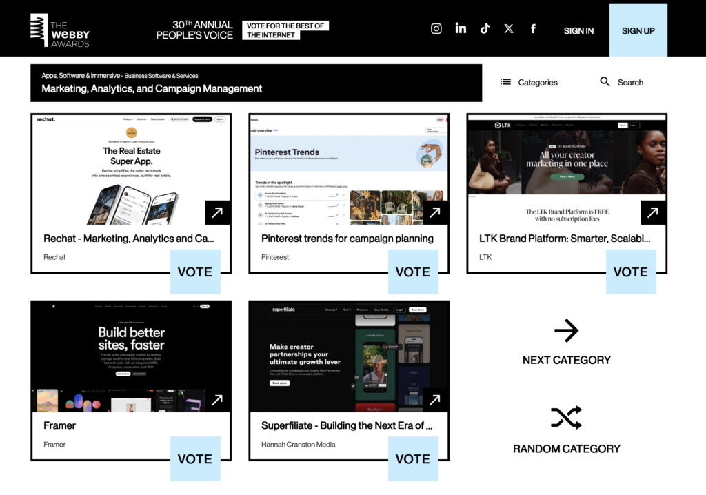 The internet’s category. Marketing, Analytics, and Campaign Management. The same category as Pinterest. LTK. Framer. Superfiliate.