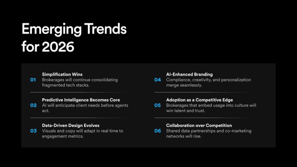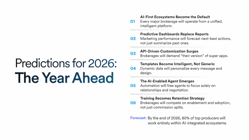 Brokerages moved from layering tools to unifying systems. Automation became routine. Personalization scaled. Design became smarter. And the performance gap between teams with integrated platforms and those without widened fast.